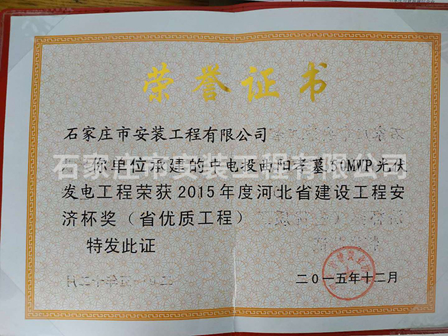 2015年度河北省建設(shè)工程安濟(jì)杯獎(jiǎng)(省優(yōu)質(zhì)工程)