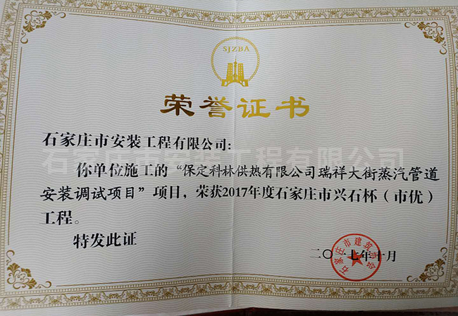 2017年度石家莊市興石杯(市優(yōu))工程